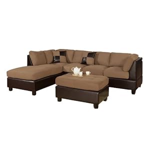 The Bobkona Hungtinton Microfiber/Faux Leather 3-Piece Sectional Sofa Set, Saddle Description